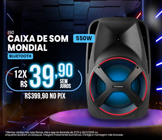 Caixa de Som Mondial Connect Power Plus CM-550 Bluetooth Amplificada 550W USB - PRETO