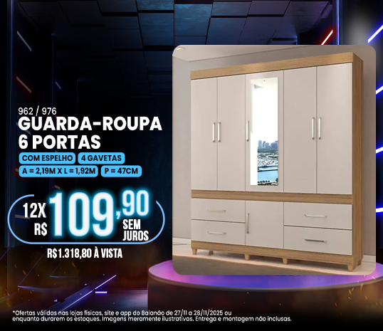 Guarda Roupa Casal 6 Portas 4 Gavetas Guarujá Demóbile - AMENDOLA TOUCH
