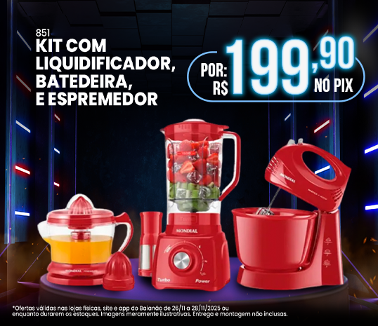 Kit Mondial Liquidificador + Batedeira + Espremedor Vermelho - VERM