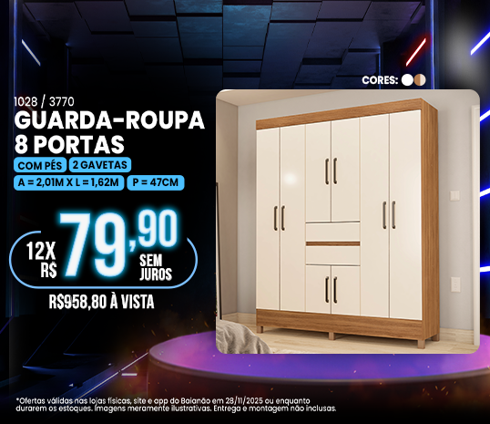 Guarda Roupa Casal Heros com 8 Portas e 4 Gavetas MDF Moderna - Naturalle
