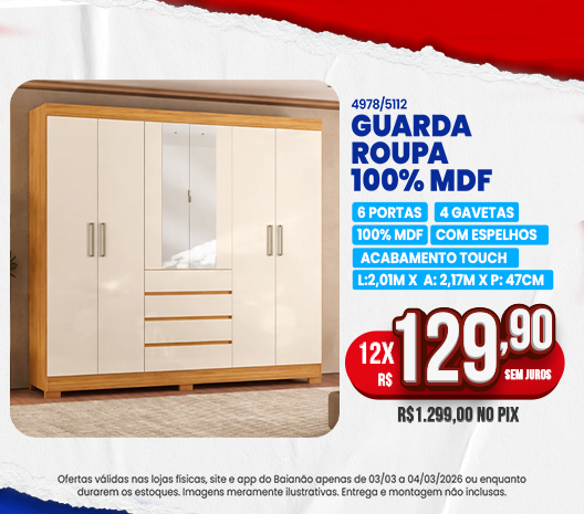 Guarda-Roupa Casal 6 Portas 2 Gavetas Flash Demóbile - AMENDOLA /OFF WHITE