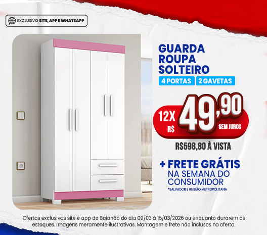 Guarda-Roupa Solteiro 4 Portas 2 Gavetas Astro Demóbile - BRANCO/ROSA