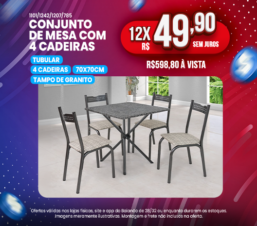 Conjunto De Mesa Com 4 Cadeiras Ciplafe - PRETO