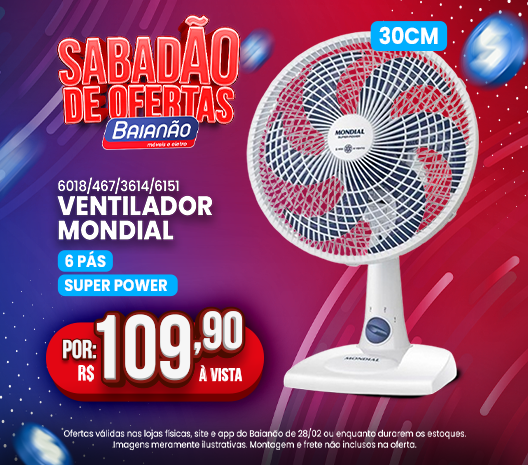 Ventilador de Mesa Mondial NVSP-30-B 30cm 6 Pás - BRANCO
