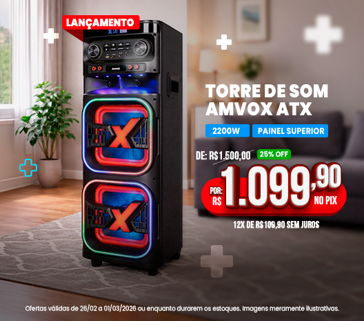 Caixa de som Torre de Som Amvox ATX 1508M Quadradinho - PRETO