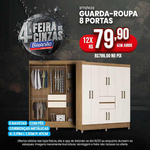 Guarda Roupa Casal 8 Portas 2 Gavetas Munique Demóbile - AMENDOLA /OFF WHITE