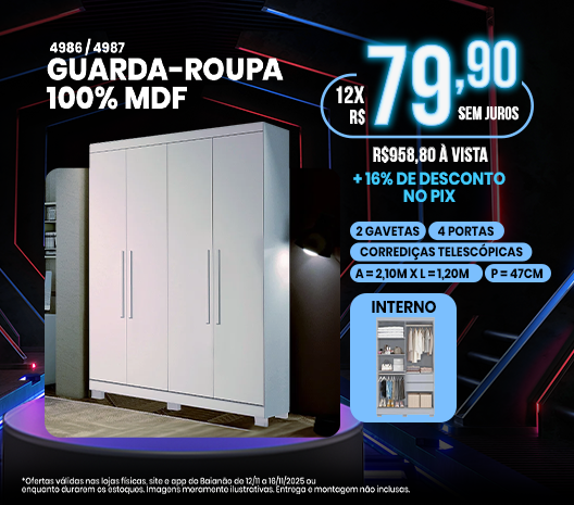 Guarda Roupa 4 Portas de Correr CB01N565 Kappesberg - CANELA/MACADAMIA