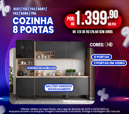 Cozinha Compacta 8 Portas 1 Gaveta Core Kits Paraná - FREIJO/SUPREMO