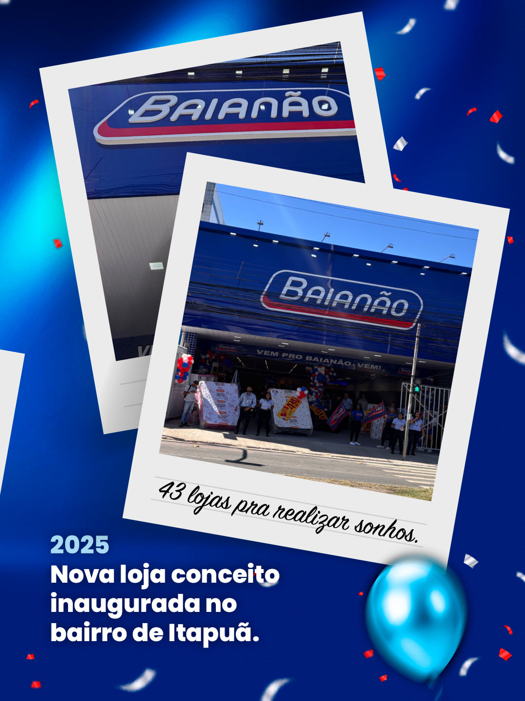 Hoje, já são 3 lojas levando nossas ofertas, qualidade e aquele atendimento arretado que só o Baianão tem!