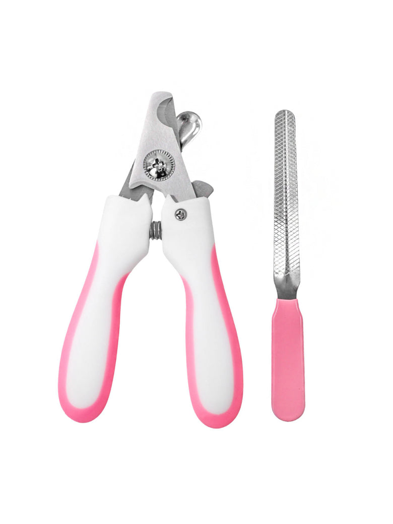 Alicate Pet Tesoura Corte De Unhas Cachorro Gato Com Lixa Cor:Rosa