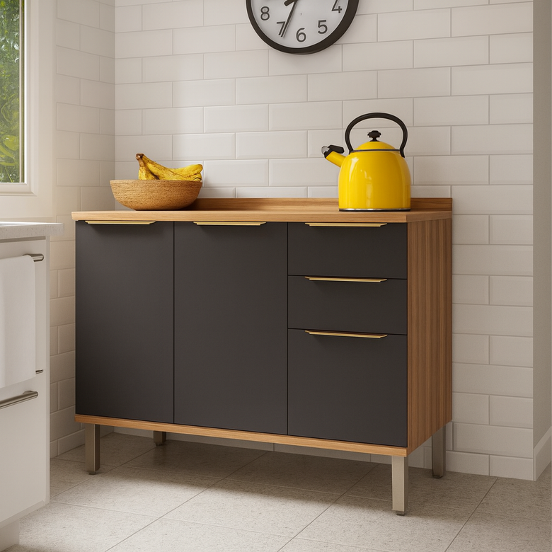Balcão 2 Portas 3 Gavetas 120 Cm MDF Sauvignon Ronipa