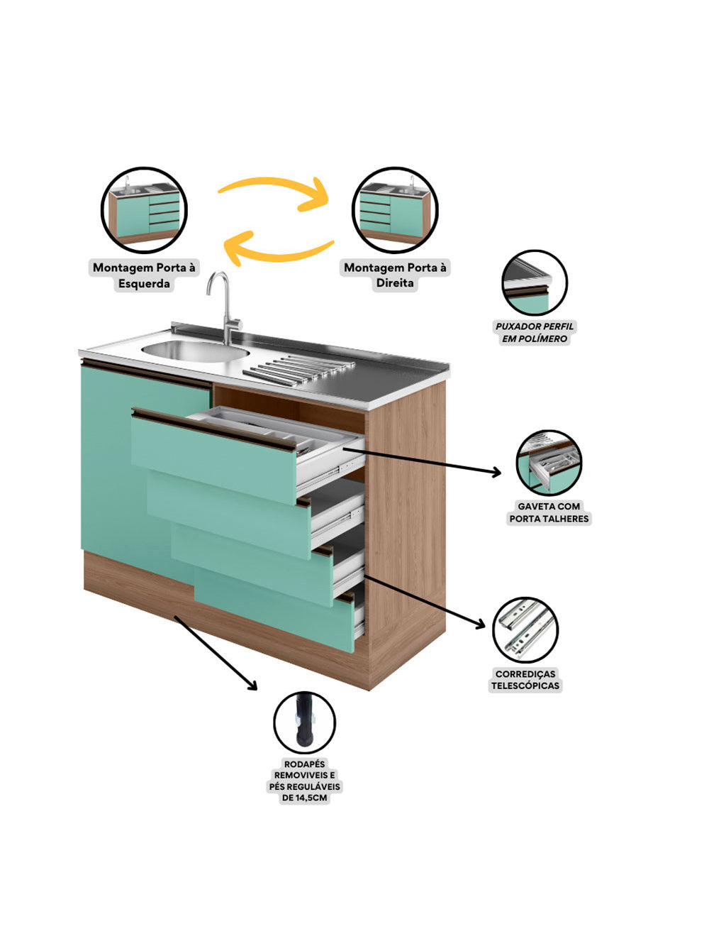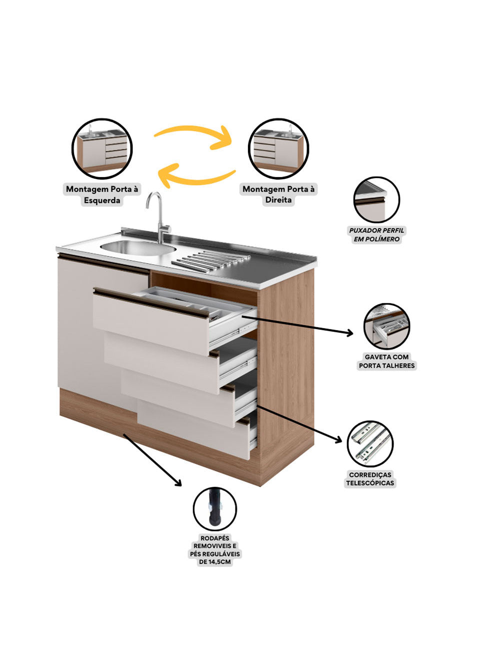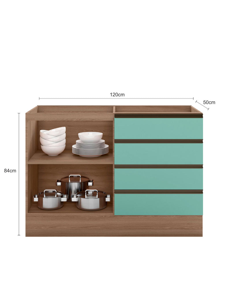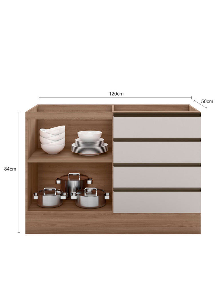 Balcão ETNA para Cuba Deslocada 1 Porta e 4 Gavetas Poliman Moveis