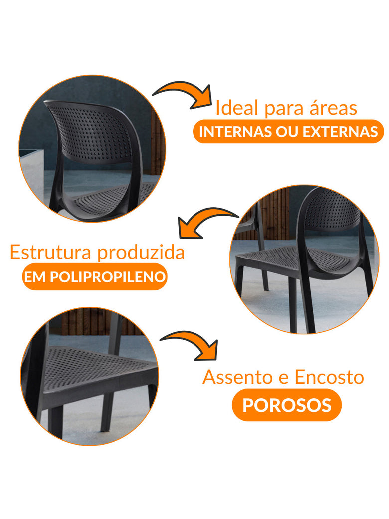 Cadeira Zoe Preta em Polipropileno resistente Moderna Mobília