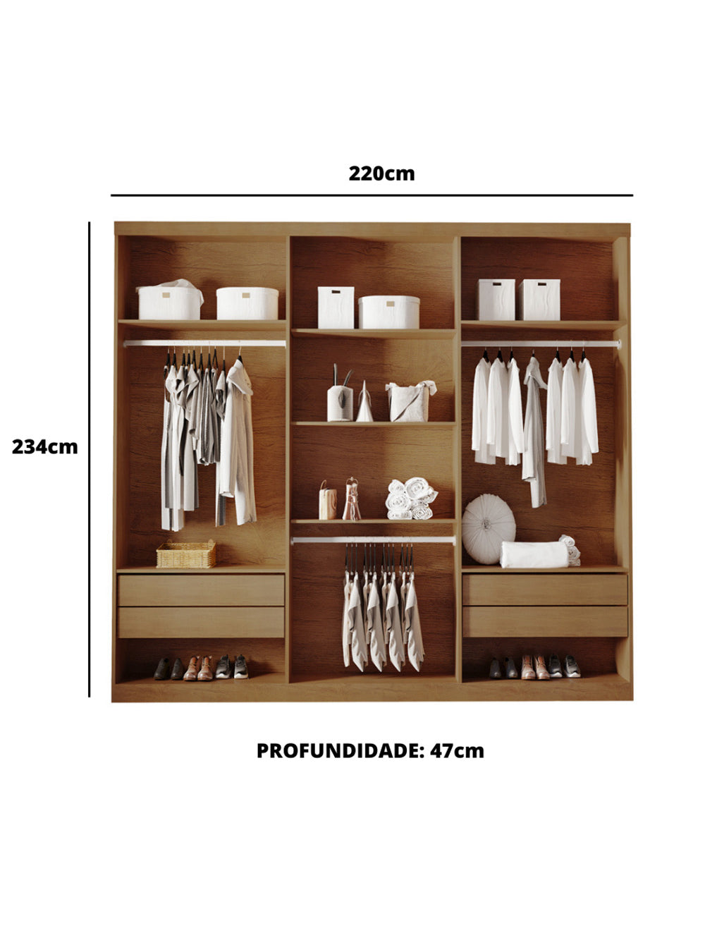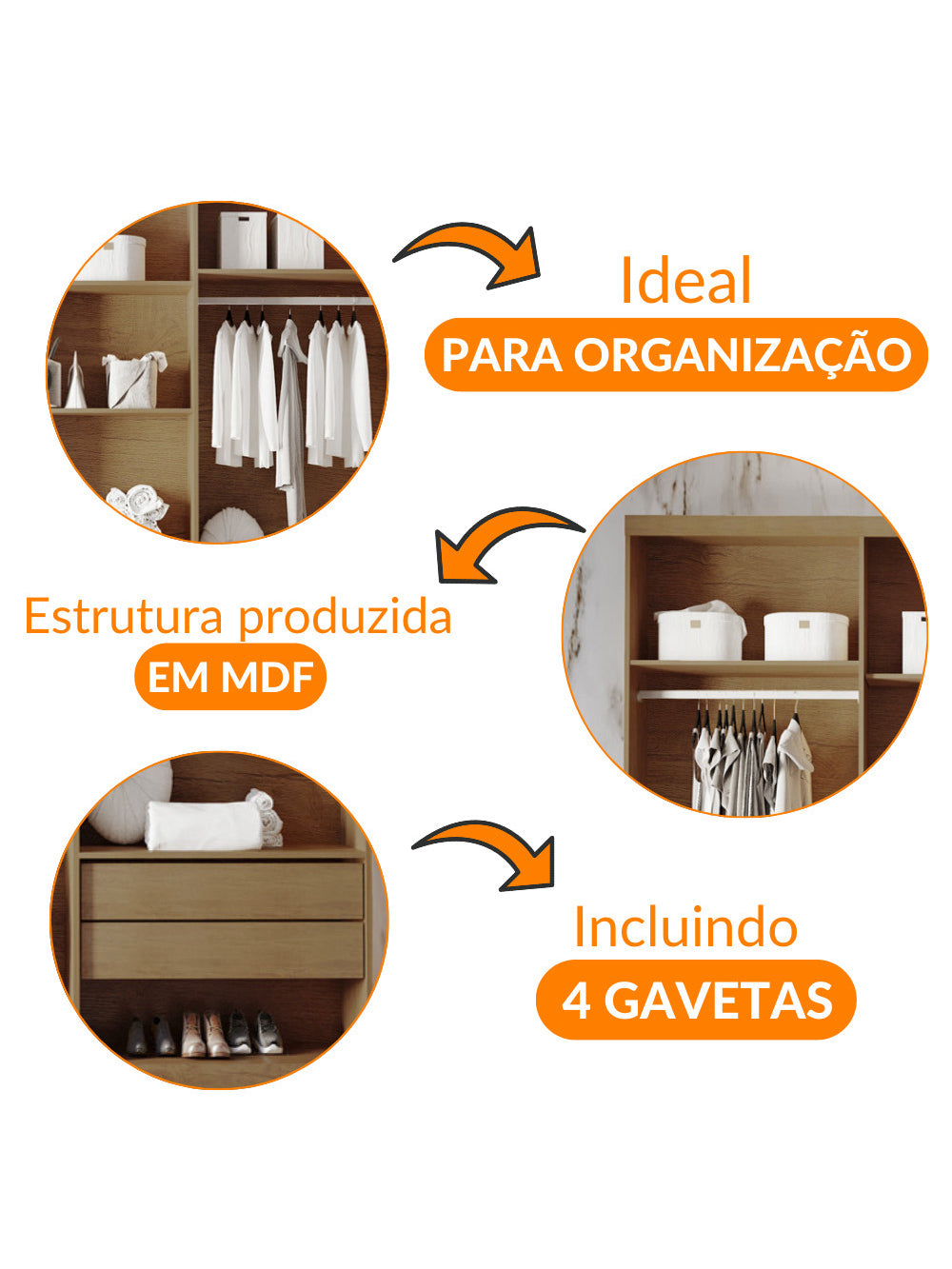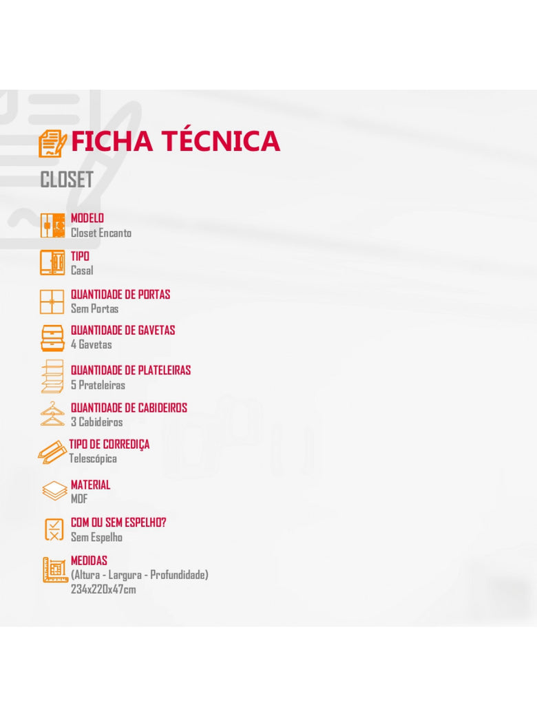 Closet Casal Encanto 4 Gavetas 5 Prateleiras MDF Rufato