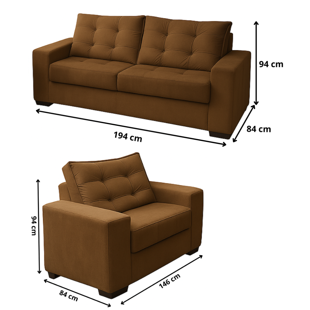 | Dimensões (AxLxC) | 2 lugares: Altura: 0,94 cm, Largura :1,46 cm, Profundidade: 0,53 cm, 3 lugares: Altura: 0,94 cm, Largura: 1,94 cm, Assento: 0,53 cm |