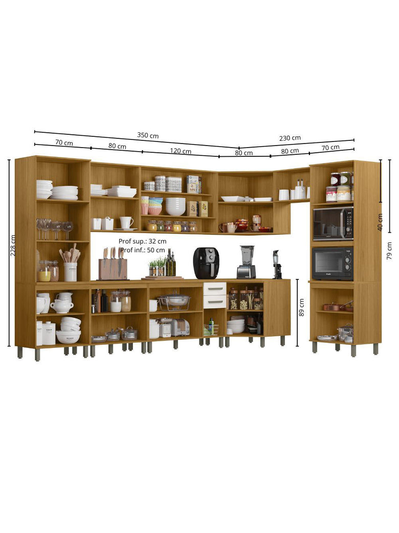 Cozinha Modulada Criare de Canto 10 Peças 23 Portas Poliman Móveis
