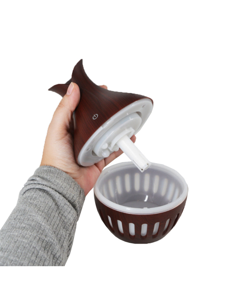 Difusor Umidificador Ultrasonico 7 Led Vaso Rajado RGB 200ml Usb Cor:Marrom