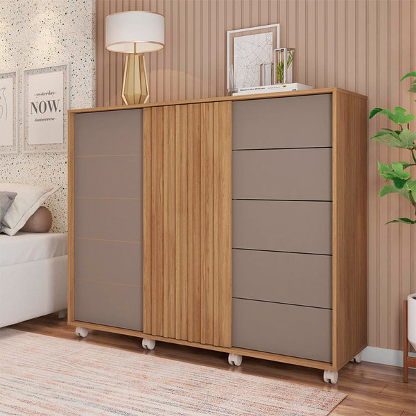 Guarda Roupa Casal 2 Portas de Correr com Espelho e 4 Gavetas 2.4 Flex Moviment Caemmun