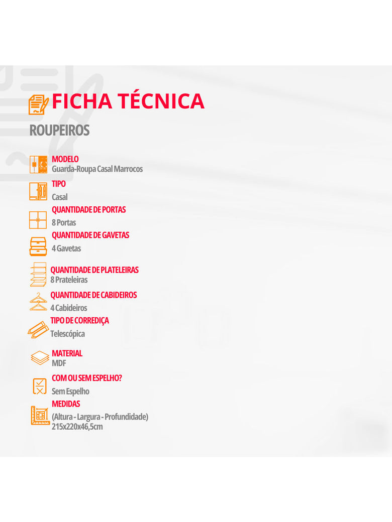 Guarda Roupa Casal Marrocos MDF 8 Portas 4 Gavetas Moderna Mobília