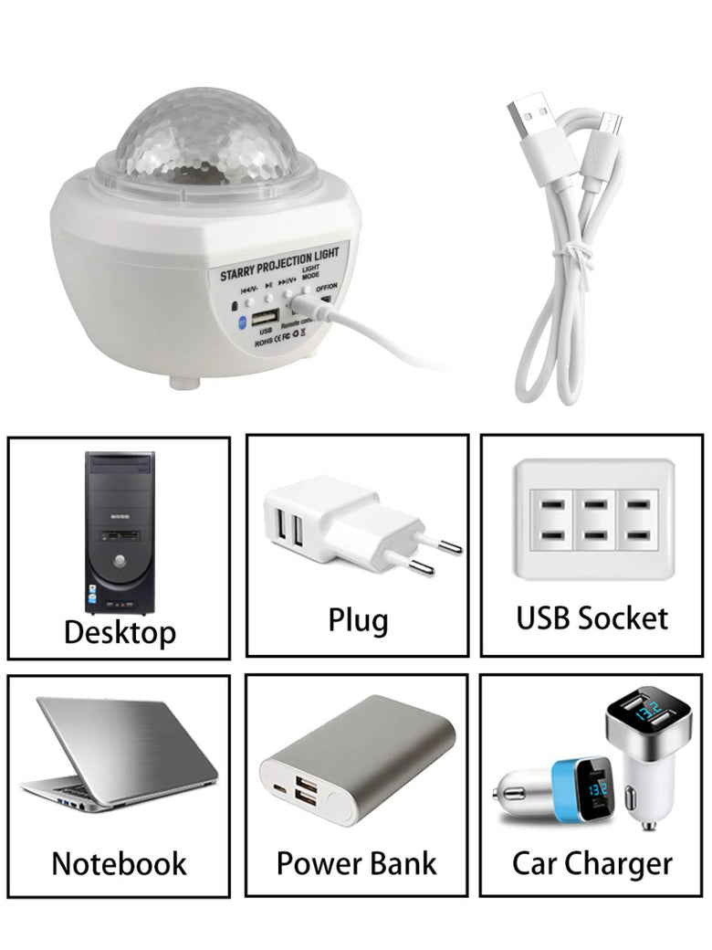 Luminaria Pojeção De Estrelas Universo Caixa De Som Bluetooth Cor:Branco