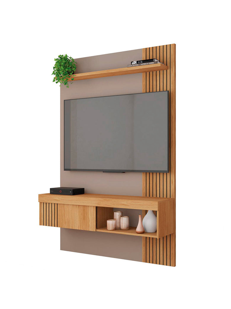 O Painel para TV Jade é a solução perfeita para quem procura um móvel elegante e funcional para otimizar o espaço da sala de estar. Com capacidade para instalar televisores de até 45 polegadas, possui 1,2 m de largura oferece um design moderno e sofisticado que combina com diversos estilos de decoração. Destaque para a lateral e porta que conta com o ripado e que agregará muito mais charme e beleza à sua decoração. Características: Acabamento: Fosco Material da Estrutura: MDF 12 mm MDP 12 mm MDP 15 mm Possui Espelho/Vidro: Não Espessura do Espelho/vidro: Não possui Número de Portas: 1 Porta Tipo de Porta: Correr Material da dobradiça/trilho da porta: Plastico Material do puxador: Embutido Número de Gavetas: Não possui Tipo da Corrediça da gaveta: Não possui Material do fundo Gaveta: Não possui Espessura do fundo Gaveta: Não possui Número de pés: Não possui Tipo de pé: Suspenso Necessita Montagem?: Sim Conteúdo da Embalagem: 1 Painel, Kit Ferragens e Manual de Montagem Dimensões: Altura: 183 cm Largura: 119,5 cm Profundidade: 33,8 cm Peso: 35,9 Kg Garantia: 3 Meses Instruções/Cuidados: Limpar com pano macio levemente umedecido e em seguida pano macio seco. Não utilizar produtos abrasivos (lixas, esponjas) e/ou produtos a base de solventes (thinner, aguarrás).