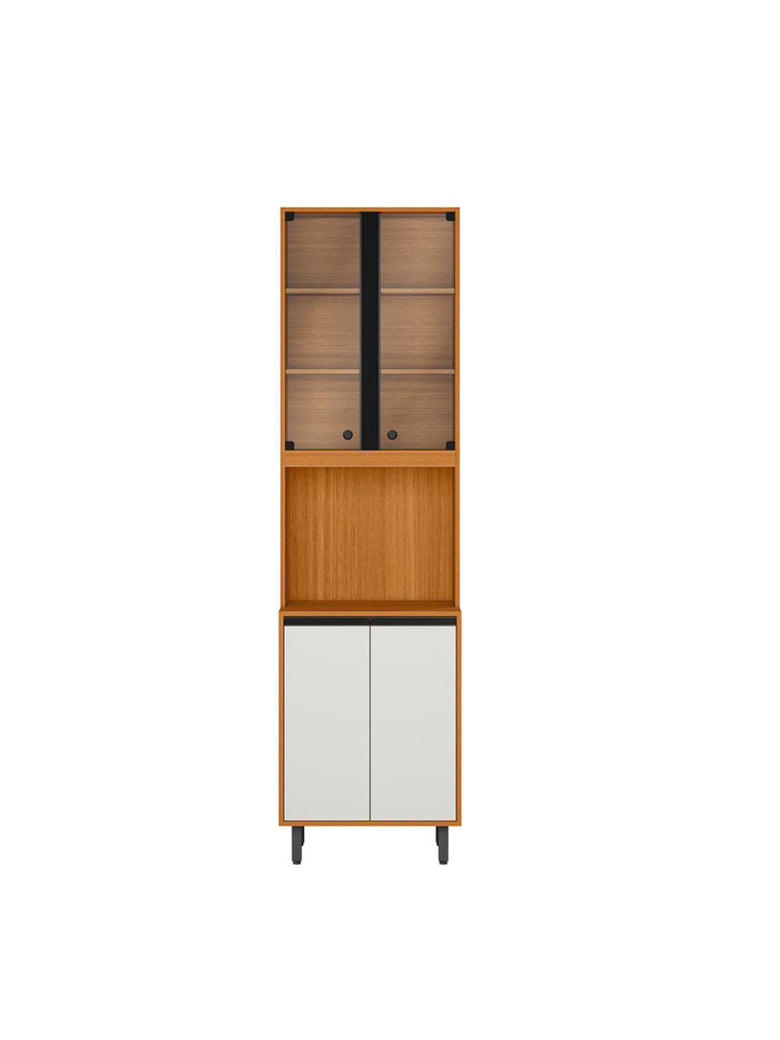 Paneleiro Ravena 04 Portas Duplo Com Vidro e Led Poliman