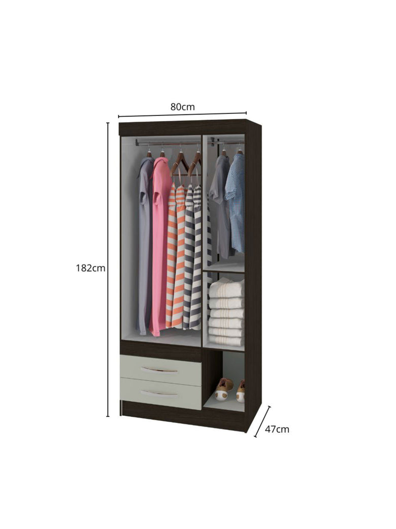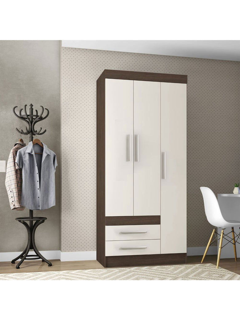Roupeiro Solteiro Cusco 03 portas 02 Gavetas Poliman Móveis