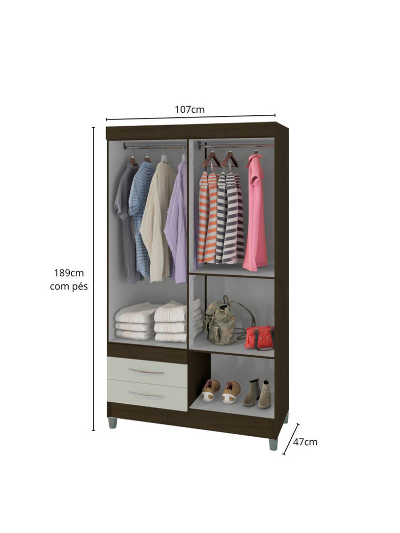 Roupeiro Solteiro Cusco 04 portas 02 Gavetas Poliman Móveis