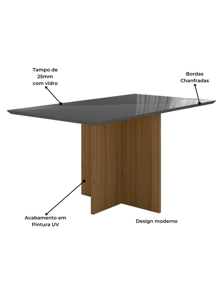 Sala de Jantar Helo 160 Tampo Chanf C/V 6L Cadeiras Jade Poliman Móveis