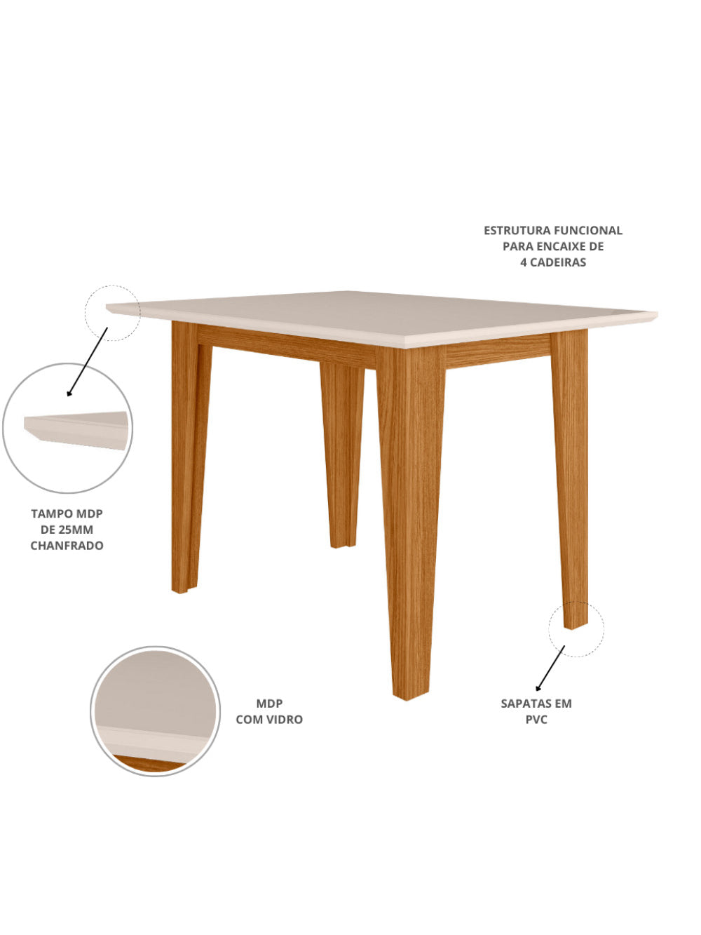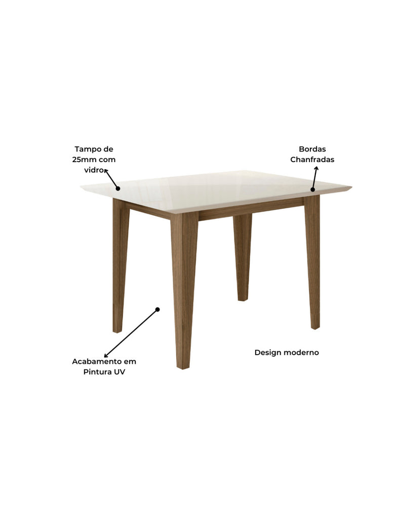 Sala de Jantar Kate 120x90 Com Vidro 4L Cadeiras Josi Poliman Móveis