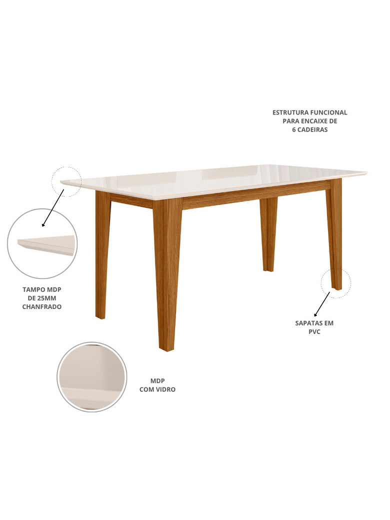 Sala de Jantar Liz 160x90 Com Vidro 6L Cadeiras Josi Poliman Móveis