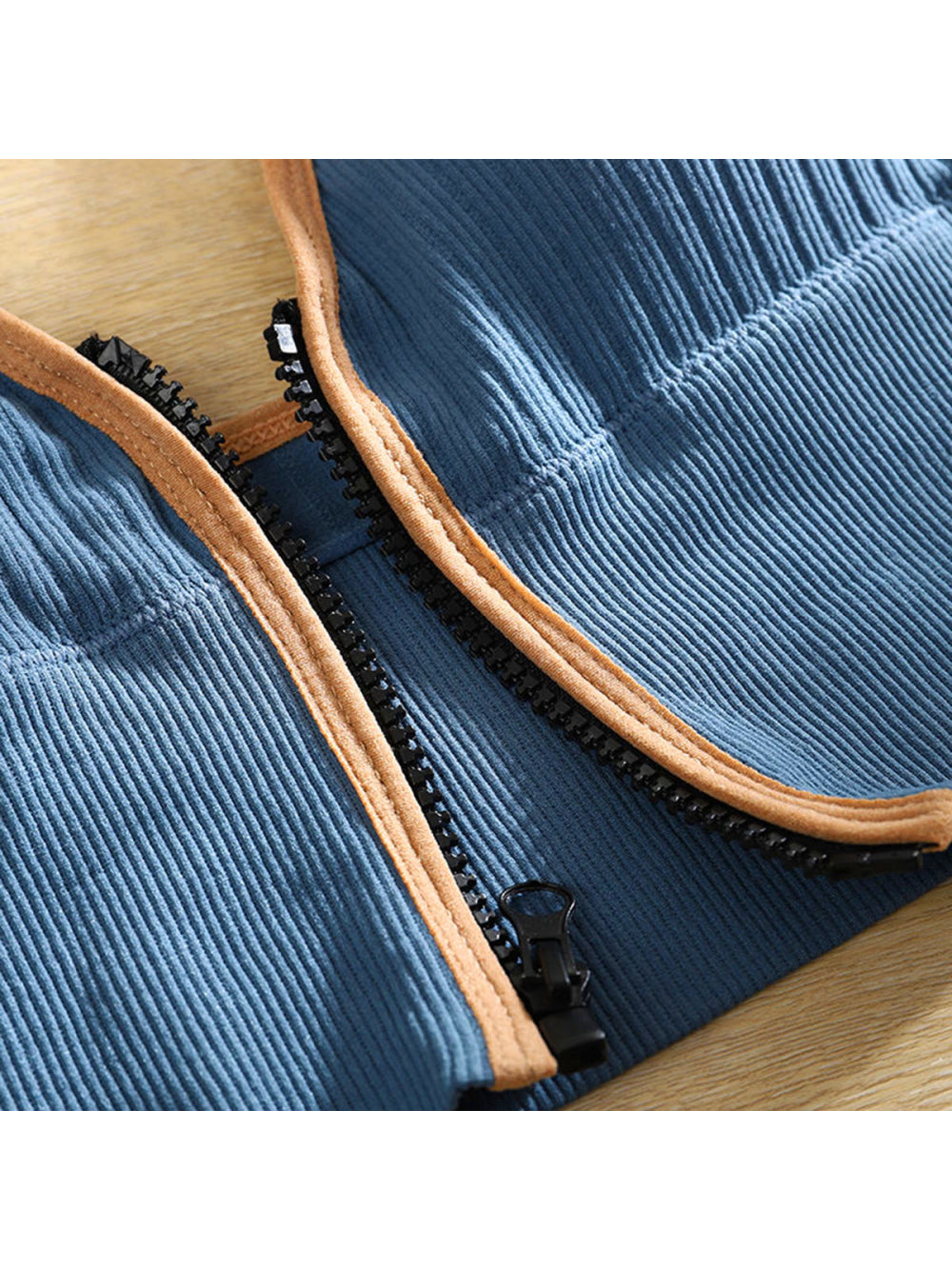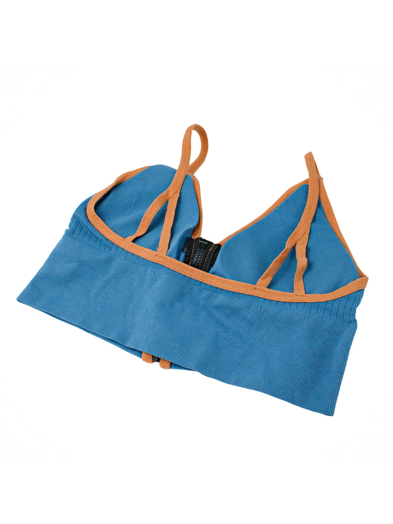 Sutiã Top Esportivo Com Ziper Frontal E Alça V Alto Impacto Cor:Azul