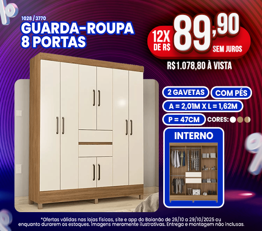 Guarda-Roupa Casal 6 Portas 2 Gavetas Flash Demóbile - AMENDOLA /OFF WHITE