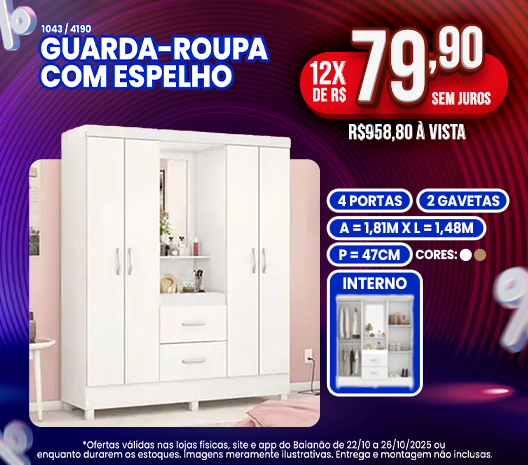 Guarda-Roupa Solteiro 4 Portas 2 Gavetas Astro Demóbile - AMENDOLA /OFF WHITE